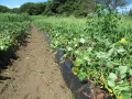 保温保湿抑草の黒マルチを少し剥がしては芽がでてきているかみています。