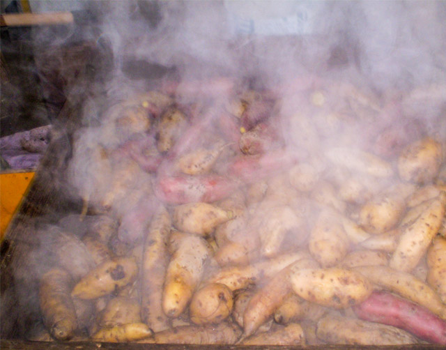 現在、薪でサツマイモを蒸かすことはほとんど行われていません。