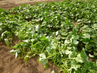 それを防いで畝(うね)下の実が大きくなるように、つる返しをしました。