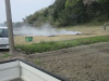 もみ殻を田んぼで焼いている農家がいました。