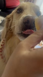 あなたの可愛いワンちゃんが干し芋を食べている写真や動画をメールで送ってください。