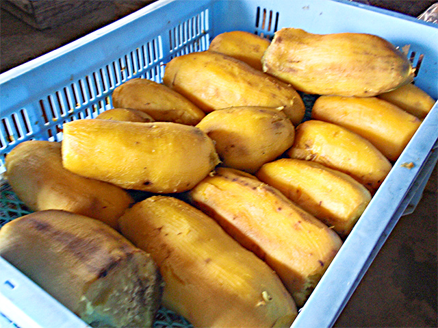 特大でありながら、形が良いサツマイモを選ぶ所から、大判作りは始まります。次はそれをじっくりと蒸かします。