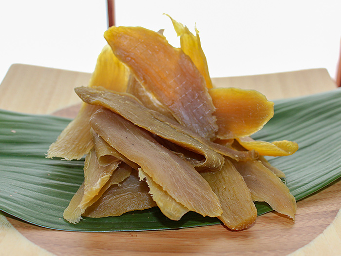 【厚切りほしいも切甲】 “干し芋大判”は通常の平干し芋よりも1.5倍の厚さでスライスした厚切りほしいもの切甲です。 もっちりとした食感と丸ほしいものような甘さが味わえます。
