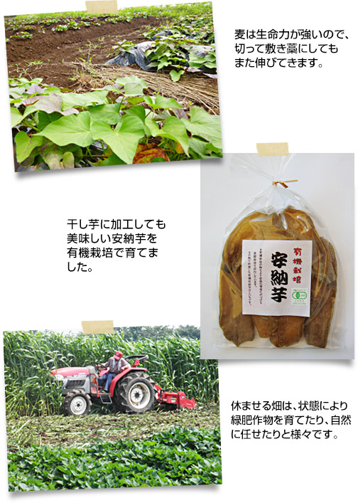 今月は、この麦間栽培の安納芋の有機平ほしいもです。